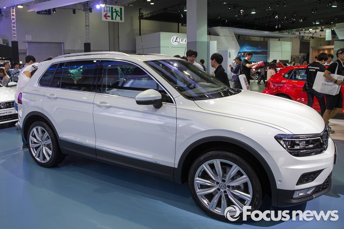 (부산=포커스뉴스) 3일 오전 부산 해운대구에 위치한 벡스코에서 열린 '2016 부산국제모터쇼'에 폭스바겐 '티구안' 차량이 전시되어 있다.