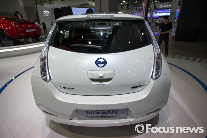(부산=포커스뉴스) 3일 오후 부산 해운대구에 위치한 벡스코에서 열린 '2016 부산국제모터쇼'에 토요타의 전기차 '리프' 차량이 전시되어 있다.