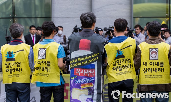 환경보건시민센터는 "UN이 정한 환경의 날을 맞아 세계에서 유례가 없는 환경참사인 가습기살균제 희생자를 기리고 추모하는 촛불추모행사를 기획했다"고 말했다.(서울=포커스뉴스)영국과 덴마크에서 옥시레킷벤키저 본사와 케톡스 본사를 항의 방문했던 가습기 살균제 피해자 유족과 시민단체가 지난 5월 11일 오후 서울 영등포구 여의도 옥시 한국본사 앞에서 귀국 기자회견을 갖고 있다. 2016.05.11 양지웅 기자