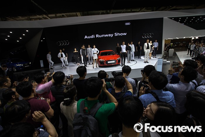 아우디는 모터쇼 행사장을 패션쇼 현장으로 바꿔놓았다. 브리핑이 시작되자 전시 부스 정면에 설치된 대형 화면에 '아우디 런웨이 패션쇼'라는 문구가 뜨고, 블랙 앤 화이트 컬러로 패션 코디를 한 모델 15명가량이 무대에 등장해 전시차량 주변에서 한동안 말없이 포즈를 잡았다. 스타일리스트 김하늘과 협업을 통해 이번 무대를 꾸민 아우디는 '기술의 진보'와 함께 '세련되고 진보적인 디자인'을 추구한다는 브랜드 아이덴티티를 부각시켰다.