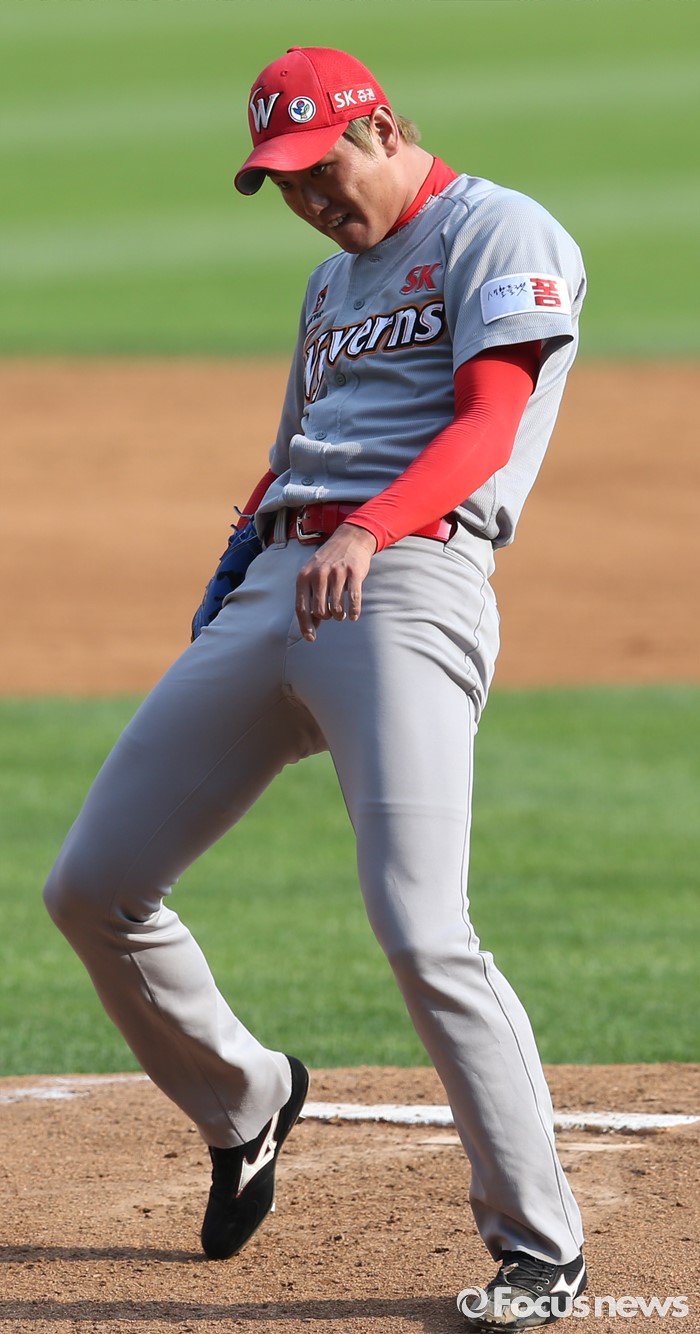 | △ 취투하는 SK 김광현 |