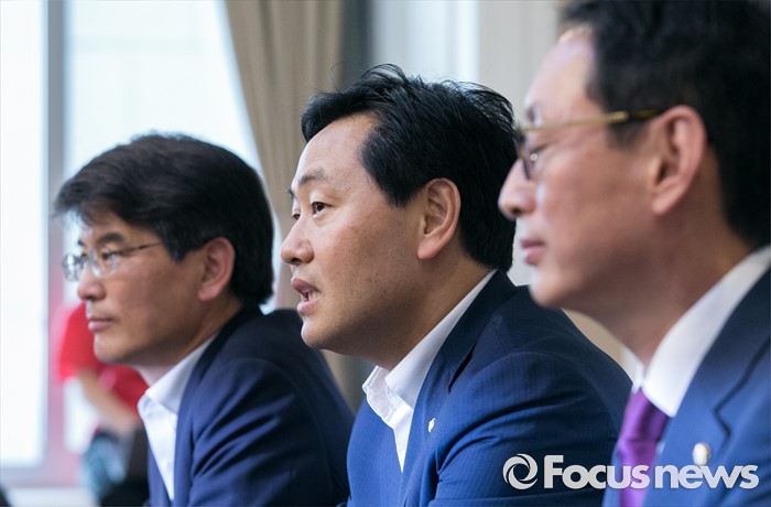 (서울=포커스뉴스) 6일 오후 서울 여의도 국회 귀빈식당에서 열린 20대 국회 원구성 협상 등을 위한 회동에 참석한 김도읍(오른쪽) 새누리당 원내수석부대표, 박완주(왼쪽) 더불어민주당 원내수석부대표, 김관영 국민의당 원내수석부대표가 취재진을 향해 발언하고 있다.