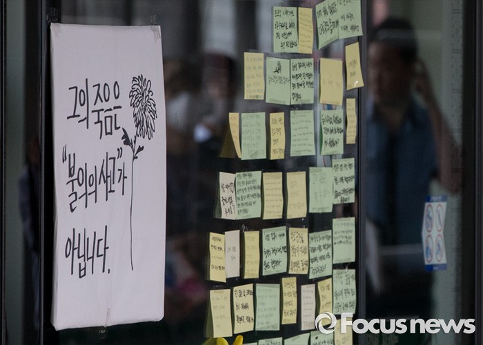 그는 "저는 개인적으로 정치라는 것을 잘 모른다. 그렇기 때문에 정치적 셈법에 개의치 않고 일을 해 나갈 것"이라며 "혁신비대위는 반성에서 출발해야 하고 국민의 소리, 현장의 소리부터 들어야 한다"고 덧붙였다.31일 오전 서울 광진구 지하철 2호선 구의역 스크린도어 사고 현장에 시민들의 추모 쪽지가 붙어 있다. 2016.05.31 양지웅 기자