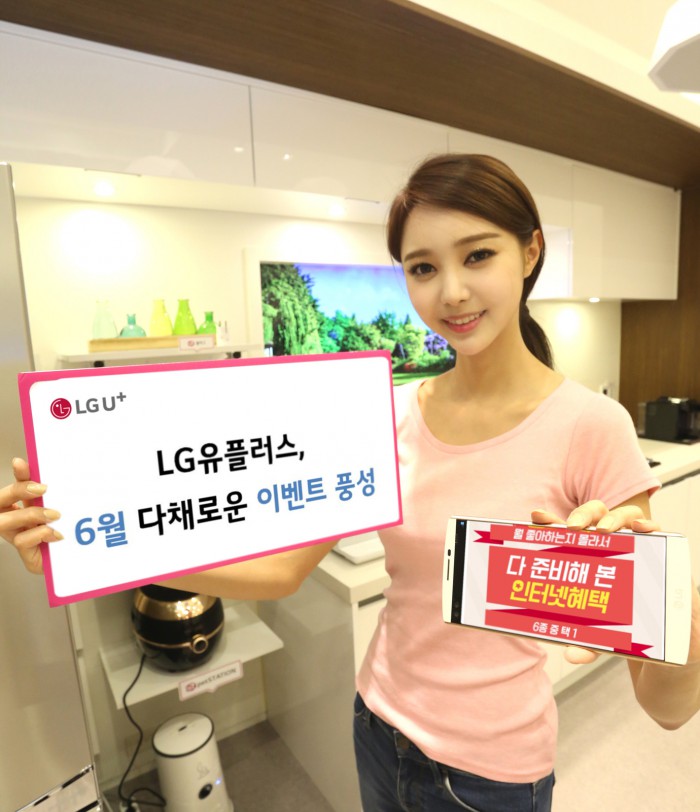 이와 함께 LG유플러스는 6월 말까지 온라인 쇼핑몰인 U+샵을 통해 인터넷 서비스를 신규 가입한 고객을 대상으로 사은품 6종 가운데 원하는 1종을 직접 선택해 할인가로 제공한다. 6종 사은품에는 LG전자의 TV겸용 모니터, LED TV, 노트북, 미니빔, 공기청정기와 백화점 상품권이 준비돼 있다.LG유플러스가 6월을 맞아 소액결제 고객을 위한 이벤트를 준비했다.<사진제공=LG유플러스>