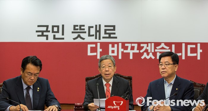 (서울=포커스뉴스) 김희옥(가운데) 새누리당 혁신비상대책위원장이 7일 오전 서울 여의도 새누리당사에서 열린 '혁신비상대책위원회의'에 참석해 모두벌언 하고 있다.