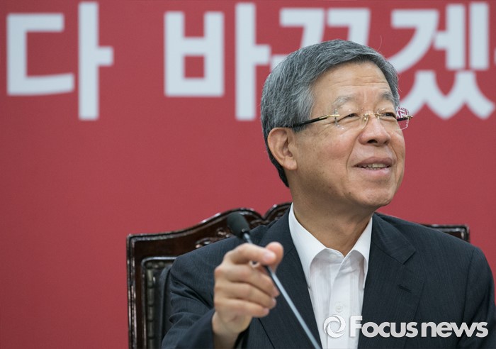 (서울=포커스뉴스) 김희옥 새누리당 혁신비대위원장이 7일 오후 서울 여의도 당사에서 청년 사무처 당직자와의 도시락 간담회에 참석해 자리하고 있다.