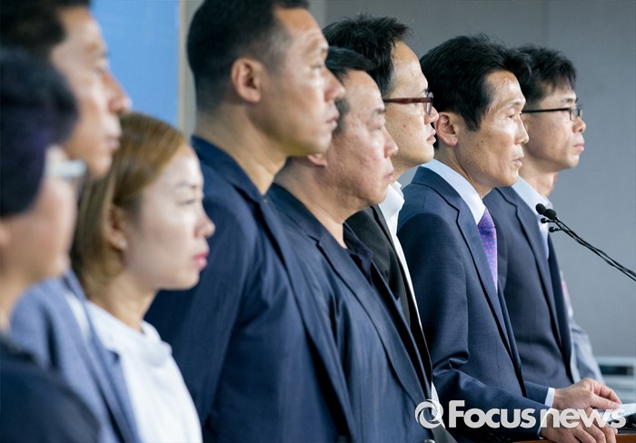 (서울=포커스뉴스) 박주민 더불어민주당 의원과 윤소하 정의당 의원, 전명선 4·16가족협의회 운영위원장, 유경근 집행위원장 등이 7일 오후 서울 여의도 국회 정론관에서 세월호 특별법 개정안 발의 기자회견을 하고 있다.