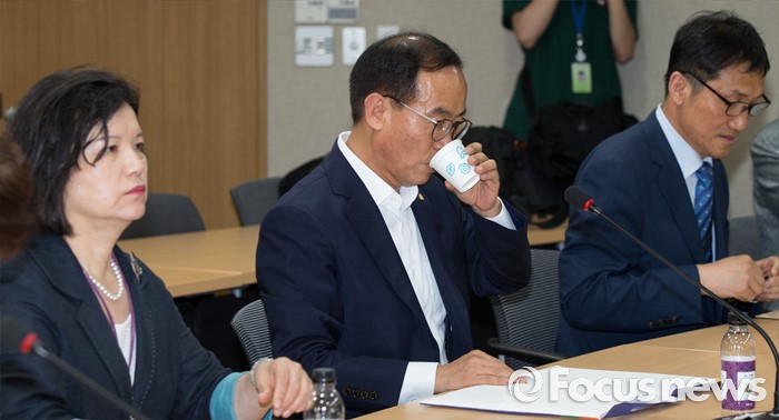 (세종=포커스뉴스) 7일 오후 세종시 정부세종청사 교육부 대회의실에서 열린 시·도 도서벽지 교원근무환경 개선대책협의에 김영증 전남교육청 교원인사과장이 참석해 목을 축이고 있다.