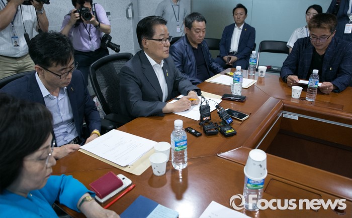 (서울=포커스뉴스) 박지원 국민의당 원내대표가 7일 오후 서울 여의도 국회 의원회관에서 세월호 특별법 개정안과 관련 전명선 4·16가족협의회 운영위원장, 유경근 집행위원장 등 관계자들과 면담을 하고 있다.