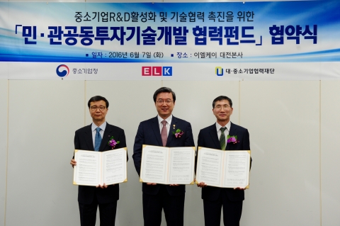 이날 협약식엔 주영섭 중기청 청장과 신동혁 이엘케이 대표, 김형호 대·중소기업협력재단 사무총장 등이 참석했다.
