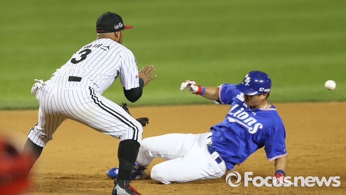 (서울=포커스뉴스) 7일 서울 잠실구장에서 열린 2016 프로야구 삼성-LG 경기 8회초 1사 1루에서 삼성 백상원이 좌중간 3루타를 치고 3루에서 세이프되고 있다.