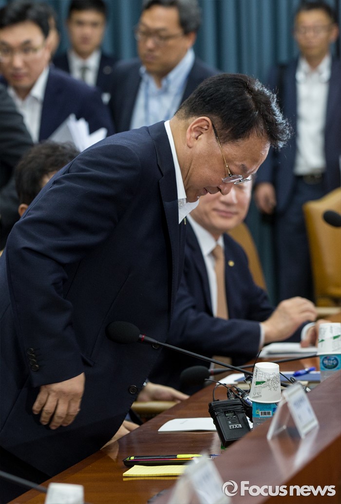 (서울=포커스뉴스) 8일 오전 서울 종로구 정부서울청사에서 열린 구조조정 관계장관회의에 유일호 경제부총리 겸 기획재정부 장관이 참석하고 있다.