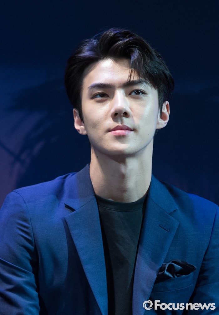 (서울=포커스뉴스) 8일 오전 서울 강남구 코엑스 아티움에서 열린 아이돌 그룹 엑소의 3집 앨범 'EX'ACT' 발표 쇼케이스에 참석한 멤버 세훈이 질문을 받고 있다.