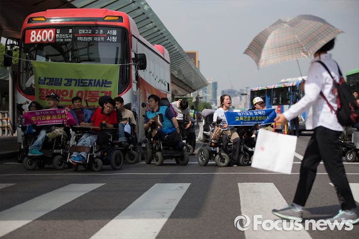 경기도행 버스 막아선 장애인들