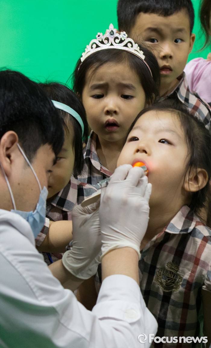 (대전=포커스뉴스) 9일 오전 구강보건의 날을 맞아 대전치과의사회 소속 치과의사들이 대전 서구 대전과학기술대학교에서 어린이집과 유치원 아동 5000여 명을 대상으로 무료 구강검진을 하고 있다.