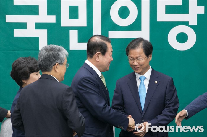 (서울=포커스뉴스) 9일 오전 서울 여의도 국회에서 국회 부의장 후보 선출을 위해 열린 국민의당 의원총회에 참석한 천정배(오른쪽 첫번째) 공동대표가 박주선(오른쪽 두번째) 의원을 축하해주고 있다. 이날 국민의당은 국회 부의장 후보로 박주선 의원을 선출했다.