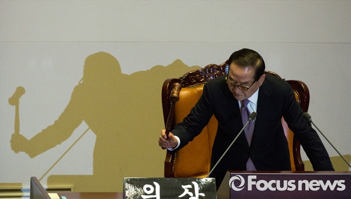 (서울=포커스뉴스) 서청원 국회의장 대행이 9일 오후 서울 여의도 국회에서 열린 본회의에 참석해 의사봉을 두드리고 있다.