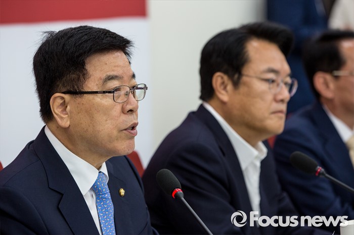 (서울=포커스뉴스) 김광림 새누리당 정책위의장이 8일 오전 서울 여의도 국회에서 열린 원내대책회의에 참석해 모두발언 하고 있다.