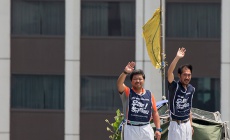 (서울=포커스뉴스) 기아차 화성공장 사내하청 비정규직 노동자들의 정규직화를 요구하며 옛 국가인권위원회 건물 옥상에서 고공농성을 이어왔던 최정명(42), 한규협(46)씨가 363일 만에 광고판에서 내려왔다.