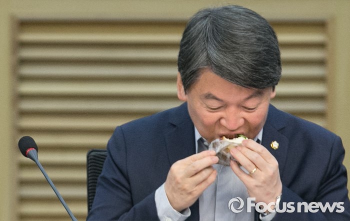 (서울=포커스뉴스) 8일 오전 서울 여의도 국회 의원회관에서 열린 국민의당 12차 정책역량강화 워크숍에 참석한 안철수 상임공동대표가 샌드위치를 먹고 있다.