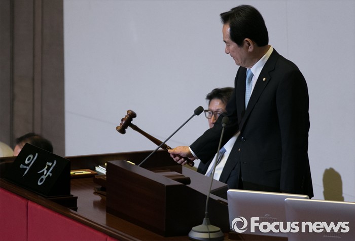 (서울=포커스뉴스) 9일 오후 서울 여의도 국회에서 열린 20대 국회 첫 본회의에 참석한 정세균 신임 국회의장이 안건 의결을 하고 있다.