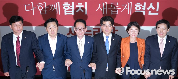 | △ 손 잡은 3당 원내수석과 원내대변인 |