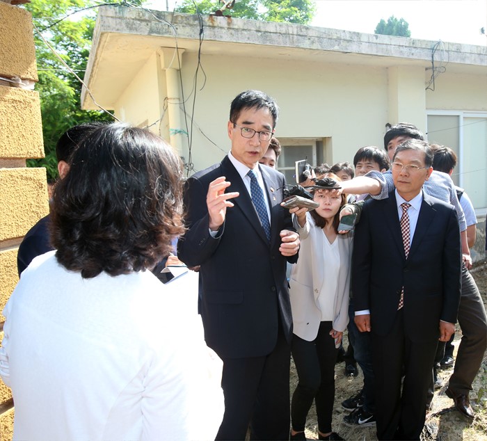 (서울=포커스뉴스) 이준식 사회부총리 겸 교육부 장관이 9일 전남 신안군 임자초등학교를 현장 방문해 도서지역 근무 여성 인력의 근무, 거주 여건을 점검하고 있다. <사진제공=교육부>