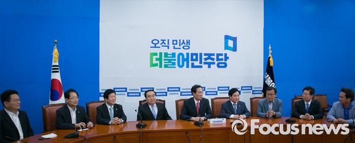 (서울=포커스뉴스) 우상호 더불어민주당 원내대표가 8일 오후 서울 여의도 국회에서 새누리당의 국회의장직을 야당이 맡고 운영 및 법사위를 여당이 맡자는 제안과 관련 4선 이상 중진 의원들과 논의를 하고 있다. 왼쪽부터 송영길, 오제세, 박병석, 문희상 의원, 우 원내대표, 이석현, 원혜영, 양승조, 안민석 의원.