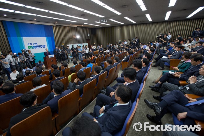 (서울=포커스뉴스) 우상호 더불어민주당 원내대표가 9일 오전 서울 여의도 국회에서 열린 의원총회에 참석해 인사말을 하고 있다.