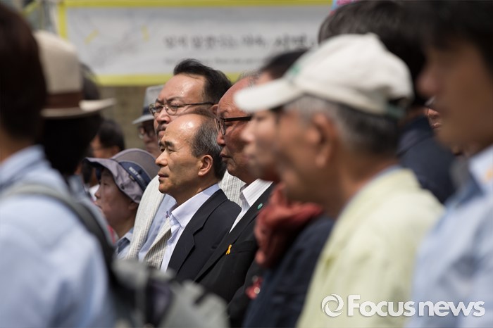 (서울=포커스뉴스) 10일 오전 서울 종로구 광화문 광장에서 민주주의국민행동 단체 회원들이 6.10 민주항생 29주년 관련 기자회견을 하고 있다.