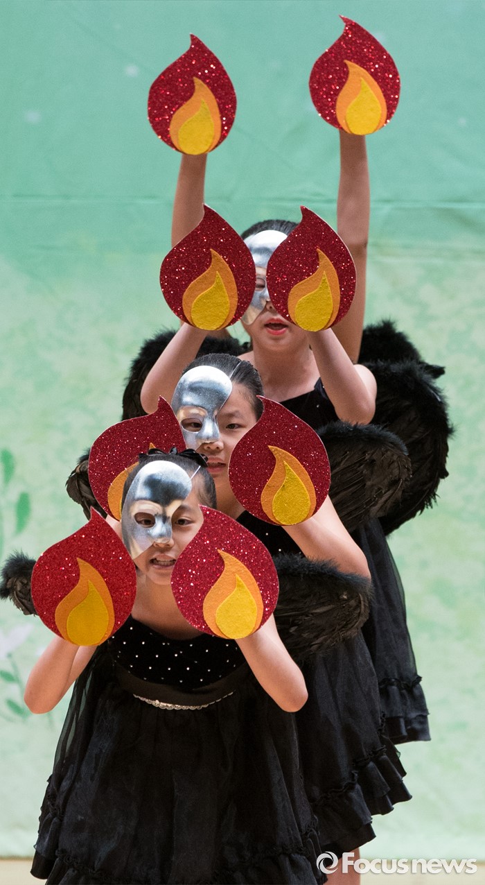 (세종=포커스뉴스) 8일 오후 세종시 조치원읍 문화예술회관에서 열린 제4회 세종 119소방동요 경연대회에 참가한 도담초등학교 어린이들이 율동을 선보이고 있다.