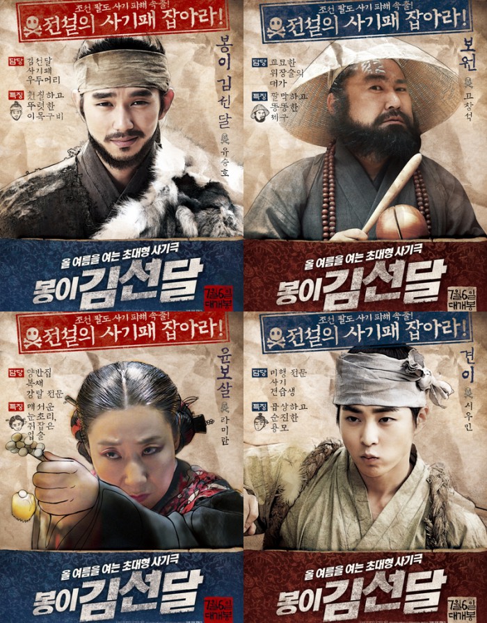 '봉이 김선달'의 캐릭터 포스터가 공개됐다. 사기패라는 콘셉트에 맞게 유승호, 고창석, 라미란, 시우민의 극 중 역할과 특징을 현상수배 형식의 포스터로 담았다.