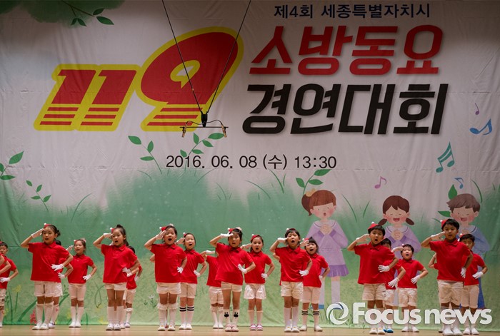 (세종=포커스뉴스) 8일 오후 세종시 조치원읍 문화예술회관에서 열린 제4회 세종 119소방동요 경연대회에 참가한 아름유치원 원생들이 율동을 선보이고 있다.