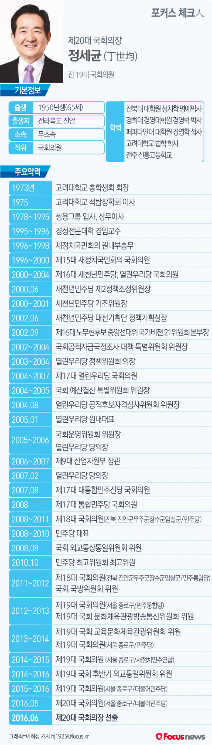 | △ [그래픽] 포커스 체크人 정세균 제20대 국회의장 |