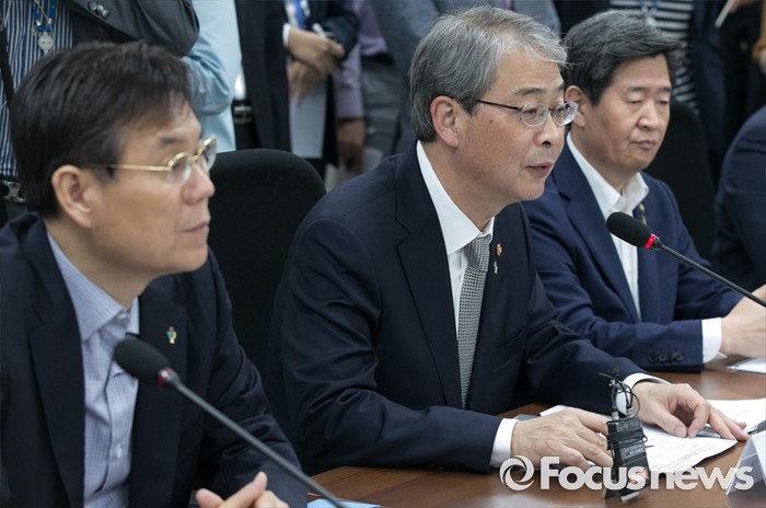 (서울=포커스뉴스) 9일 오전 서울 여의도 국회에서 열린 산업·기업 구조조정 관련 당정간담회에 참석한 임종룡(가운데) 금융위원장이 모두발언을 하고 있다.