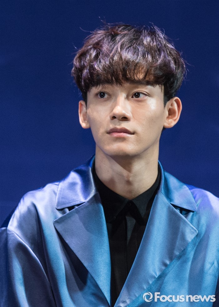 (서울=포커스뉴스) 8일 오전 서울 강남구 코엑스 아티움에서 열린 아이돌 그룹 엑소의 3집 앨범 'EX'ACT' 발표 쇼케이스에 참석한 멤버 첸이 취재진에게 질문을 받고 있다.