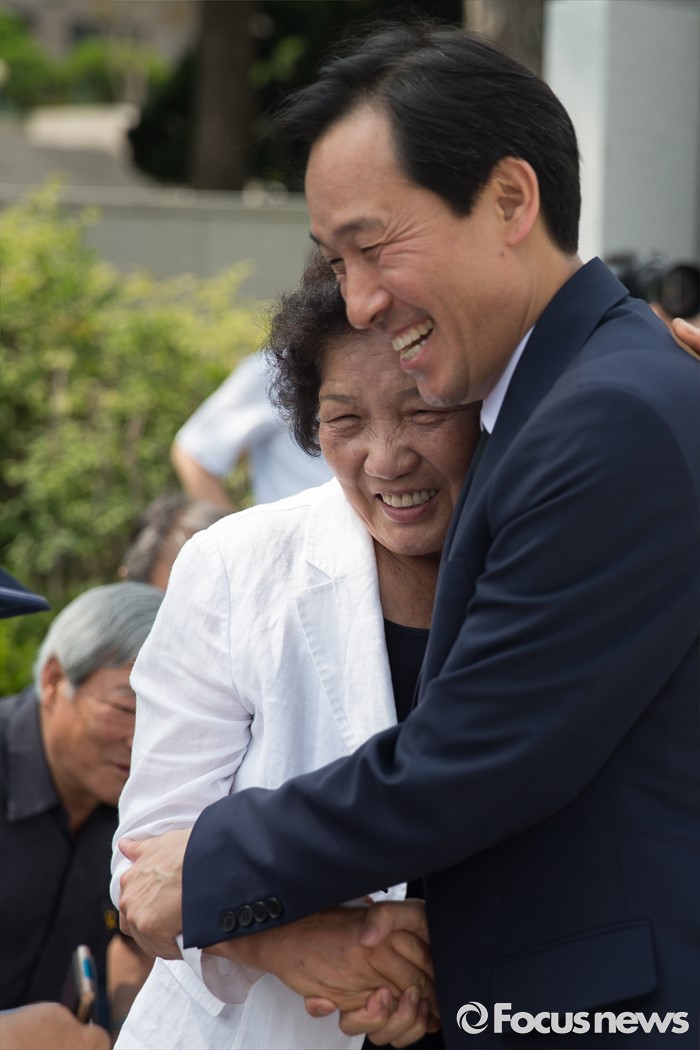 | △ 포옹하는 배은심 이한열 열사 어머니와 우상호 더불어민주당 원내대표 |