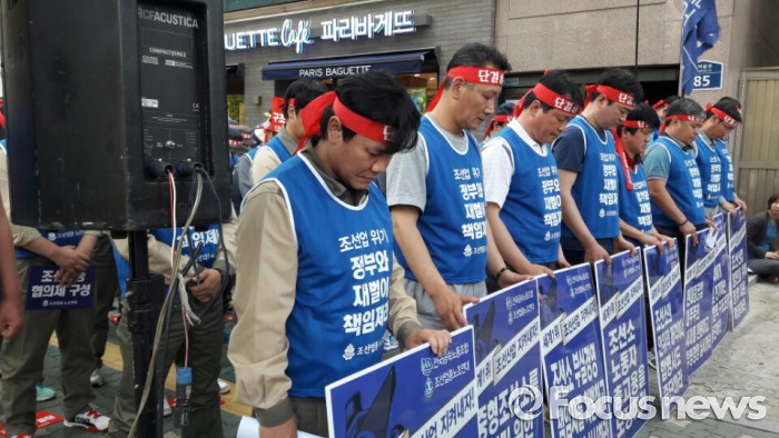 (서울=포커스뉴스) 정부가 8일 산업·기업 구조조정 추진계획을 발표한 가운데 조선업종노조연대(조선노연)가 정부의 일방적 구조조정 중단과 부실경영 책임자 처벌 촉구를 내걸고 투쟁에 나섰다.