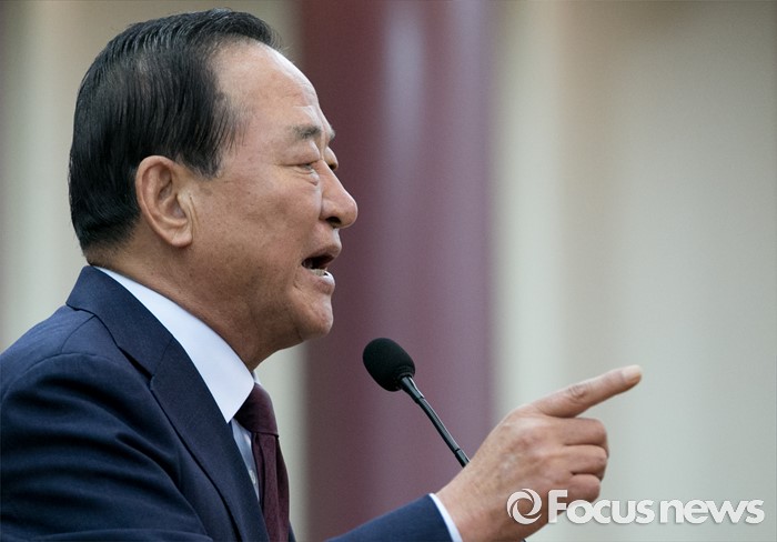 (서울=포커스뉴스) 8일 오전 서울 여의도 국회 의원회관에서 열린 국가미래전략포럼(일명 알파포럼) 창립총회 및 강연회에 참석한 서청원 새누리당 전 최고위원이 축사를 하고 있다. 이날 정 원내대표와 서 전 최고위원은 국회의장직을 야당에 양보한다는 뜻을 밝혔다.