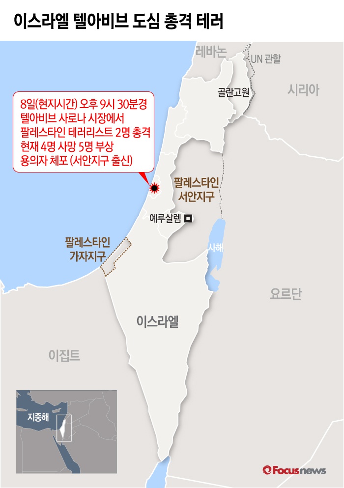 | △ [그래픽] 이스라엘 텔아비브 도심 총격 테러 |