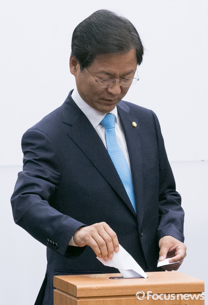 (서울=포커스뉴스) 9일 오전 서울 여의도 국회에서 국회 부의장 후보 선출을 위해 열린 국민의당 의원총회에 참석한 천정배 공동대표가 투표를 하고 있다. 이날 국민의당은 국회 부의장 후보로 박주선 의원을 선출했다.