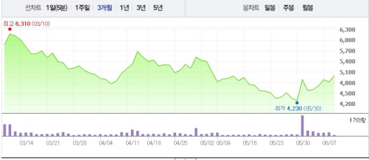 앞서 대우조선해양은 “유럽지역 선주와 6763억원 규모의 LNG운반선 2척, 초대형 원유운반선 2척 수주 계약을 체결했다”고 공시했다. 이는 매출액 대비 4.5% 수준이다.주가흐름<사진출처=네이버 캡쳐>