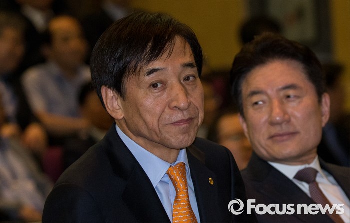 (서울=포커스뉴스) 10일 오전 서울 중구 한국은행 별관에서 열린 '한국은행 창립 66주년 기념식'에 참석한 이주열(왼쪽) 한은 총재가 생각에 잠겨 있다.