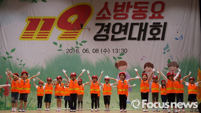 (세종=포커스뉴스) 8일 오후 세종시 조치원읍 문화예술회관에서 열린 제4회 세종 119소방동요 경연대회에 참가한 도담초등학교 어린이들이 율동을 선보이고 있다.