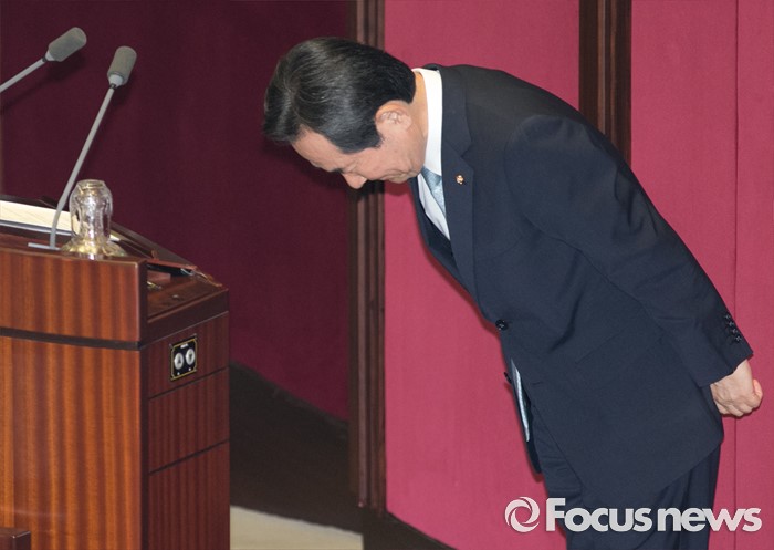 (서울=포커스뉴스) 9일 오후 서울 여의도 국회에서 열린 20대 국회 첫 본회의에서 전반기 국회의장으로 선출된 정세균 더불어민주당 의원이 수락 연설에 앞서 인사하고 있다.