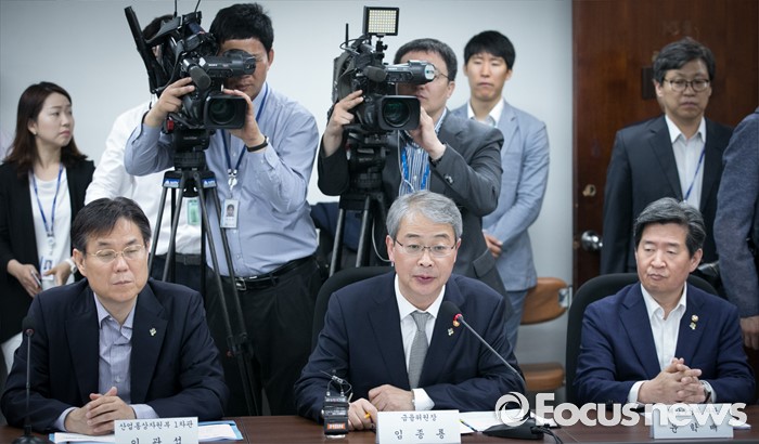 (서울=포커스뉴스) 9일 오전 서울 여의도 국회에서 열린 산업·기업 구조조정 관련 당정간담회에 참석한 임종룡(가운데) 금융위원장이 모두발언을 하고 있다.