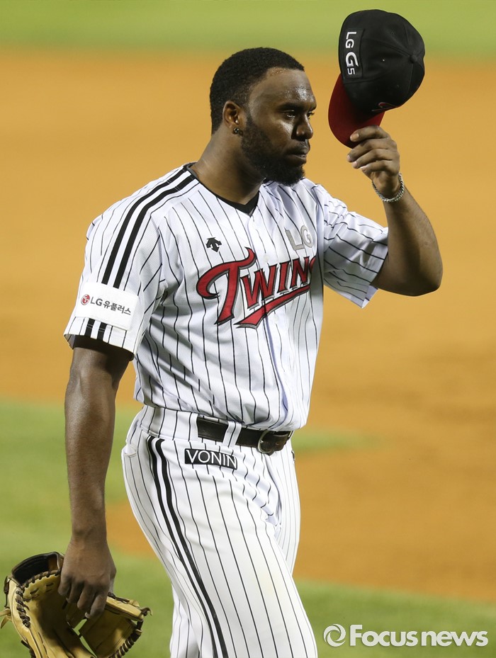 (서울=포커스뉴스) 9일 서울 잠실구장에서 열린 2016 프로야구 삼성-LG 경기에서 LG 투수 헨리 소사가 8회 1사후 안타를 맞고 교체돼 마운드를 내려가고 있다.