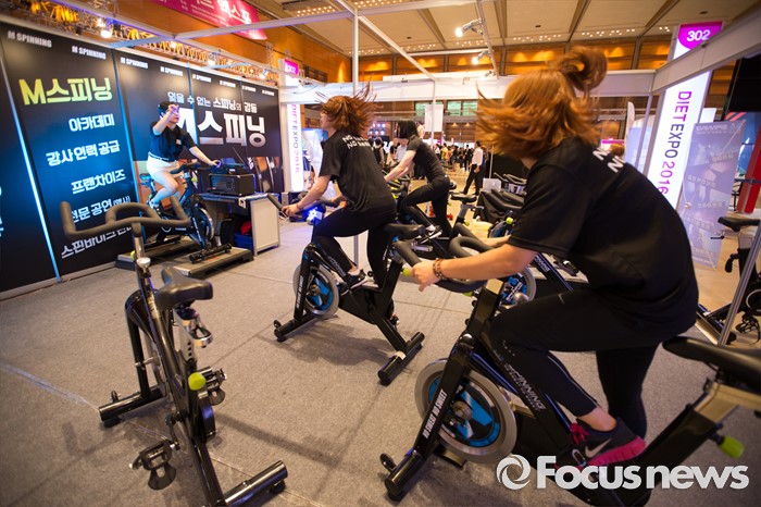 (서울=포커스뉴스) 9일 오후 서울 강남구 코엑스 D홀에서 열린 '2016 세계 다이어트 엑스포'에서 시민들이 건강보조기구를 체험하고 있다. 기간은 6.9~6.11일 까지 진행된다.