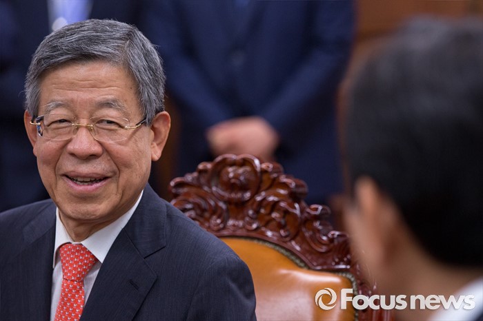 (서울=포커스뉴스) 김희옥 새누리당 혁신비상대책위원회 위원장이 10일 오후 서울 여의도 국회에서 정세균 국회의장을 예방 하고 있다.