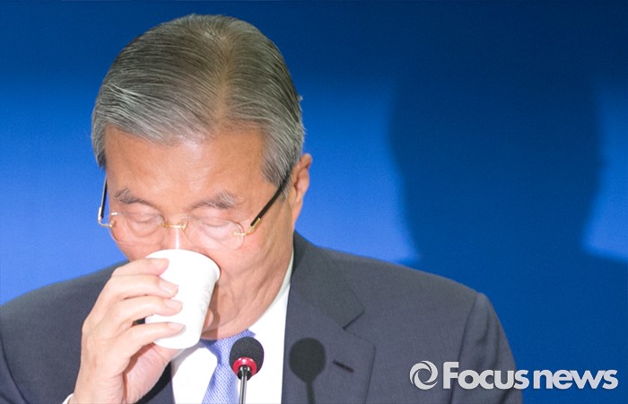 (서울=포커스뉴스) 8일 오전 서울 여의도 민주정책연구원에서 '건강보험 부과체계 개편 방안' 주제로 열린 사회경제포럼에 참석한 김종인 더불어민주당 비대위 대표가 물을 마시고 있다.